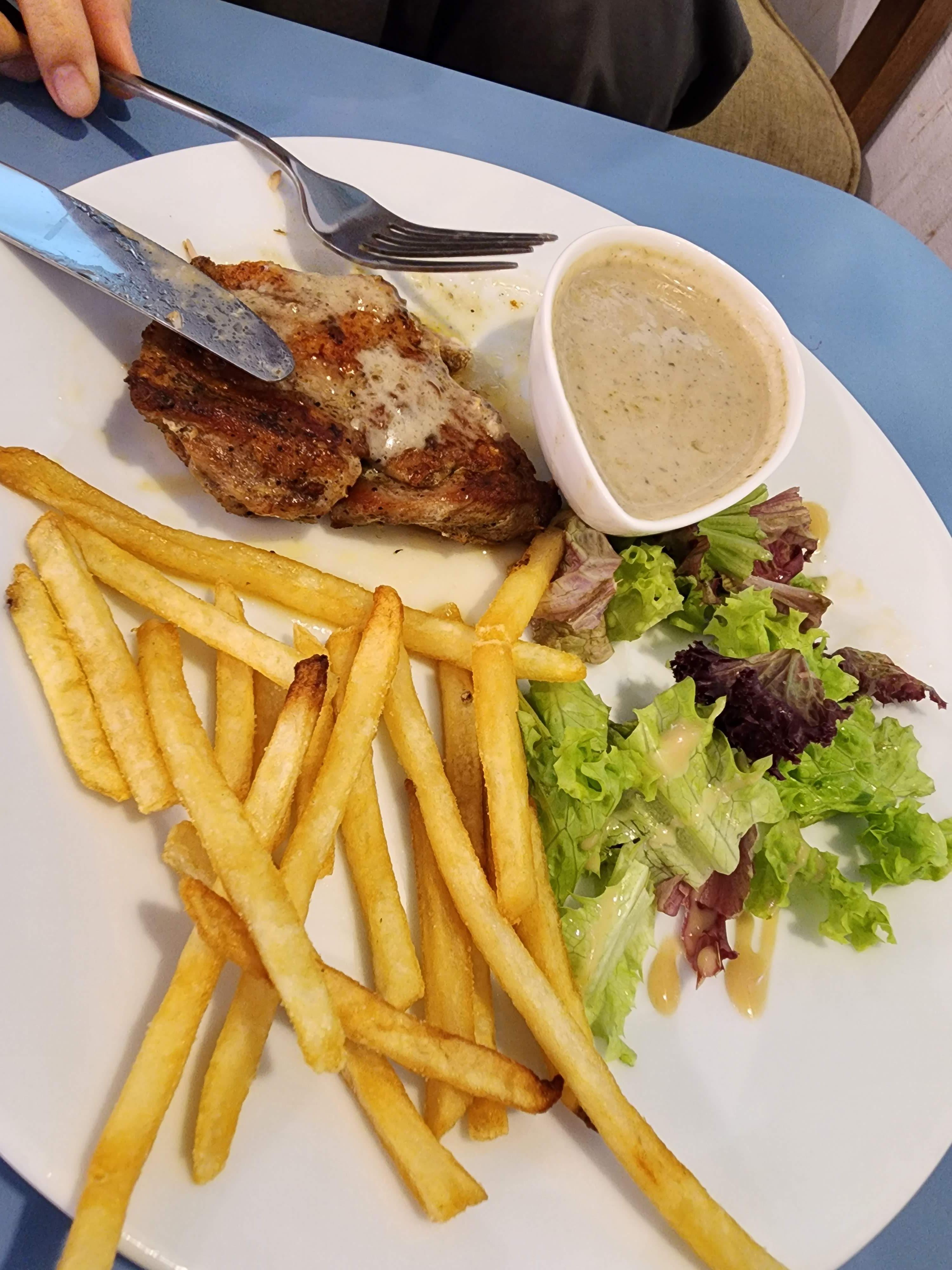이 카페의 대부분의 메뉴를 먹어봤지만, 치킨첩이 제일 맛있는 것 같습니다. 적당히 배도 불러지고 양도 좋고 가격도 괜찮은 편입니다. 이제 음식을 먹으며 아이들이 수영하는 모습을 지켜봅니다.