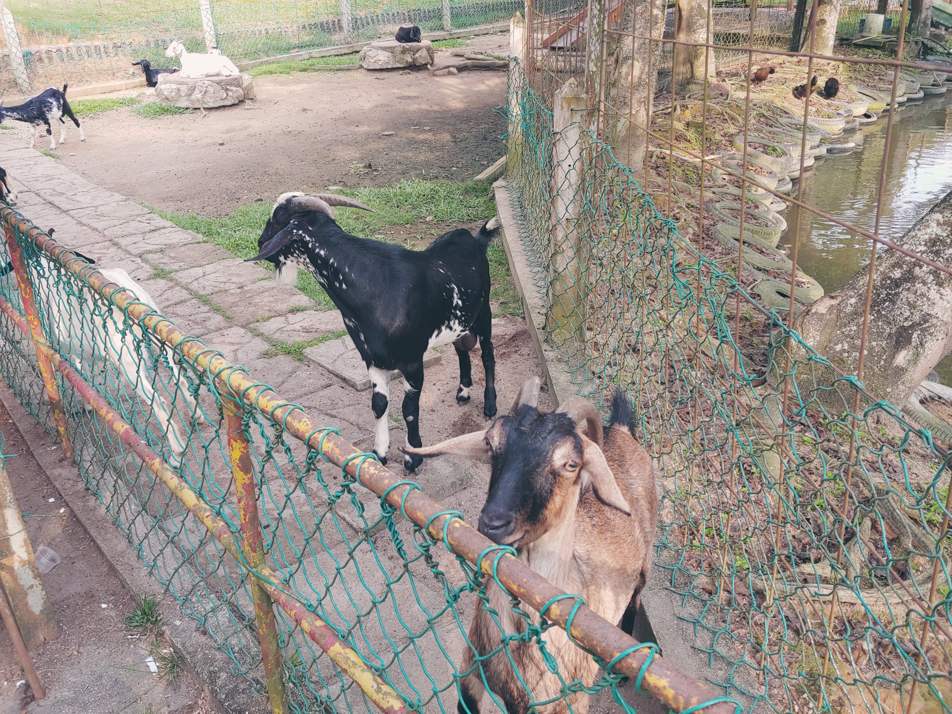 입구에서 먹이를 사면 미니 동물원의 동물들에게 먹이를 줄 수 있습니다. 염소들이 야무지게 잘 먹습니다.