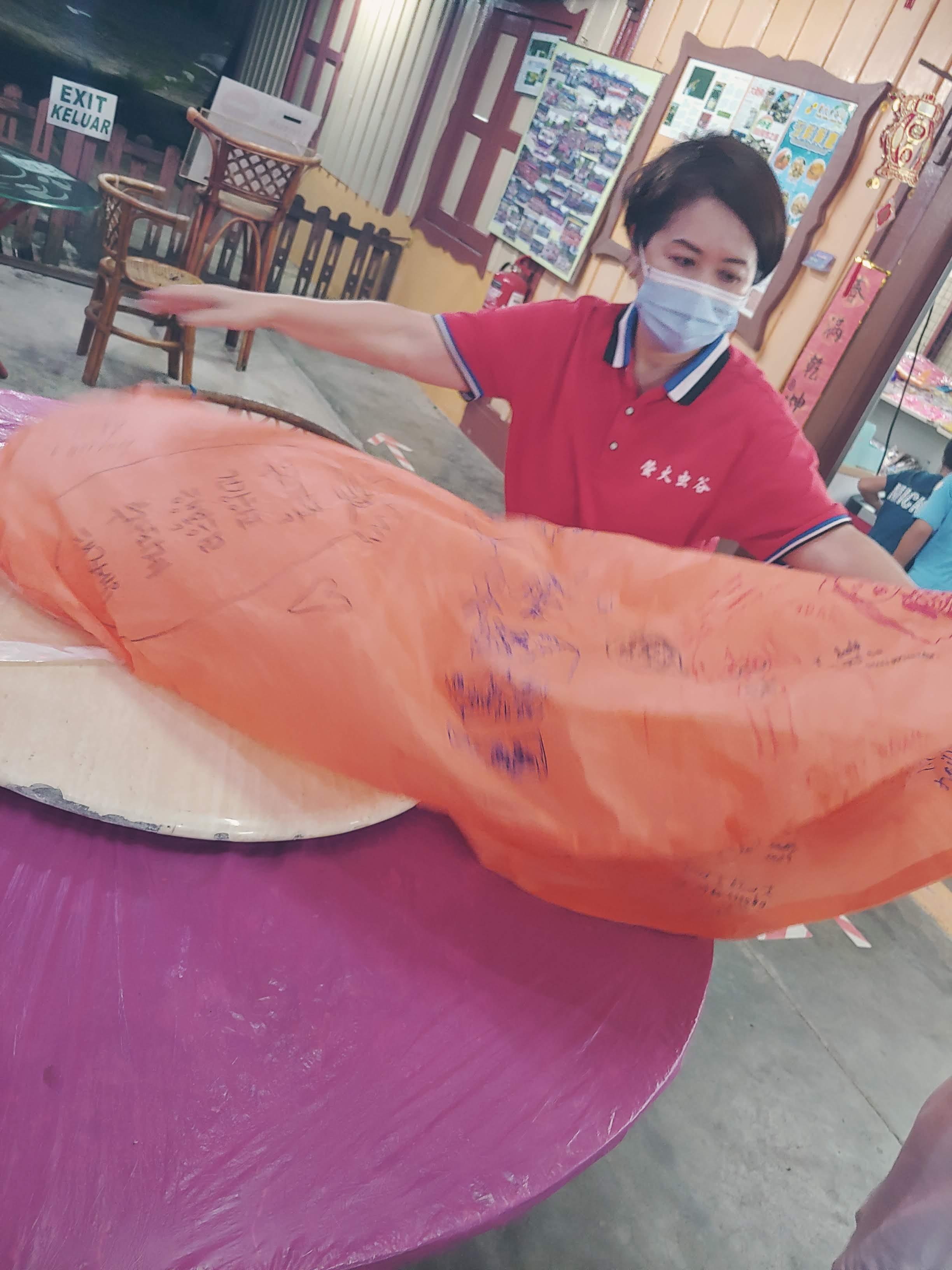 주인아주머니가 오셔서 풍등의 위치를 확인하고, 안에 소모 램프를 넣어주셨습니다. 이제 야외로 나가 풍등을 날리면 됩니다.