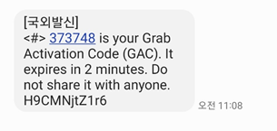 Messages : 그랩을 이용하면 그랩 기사나, 배달 기사가 도착전에 메시지를 보내옵니다. 이곳에서 확인하면 됩니다.