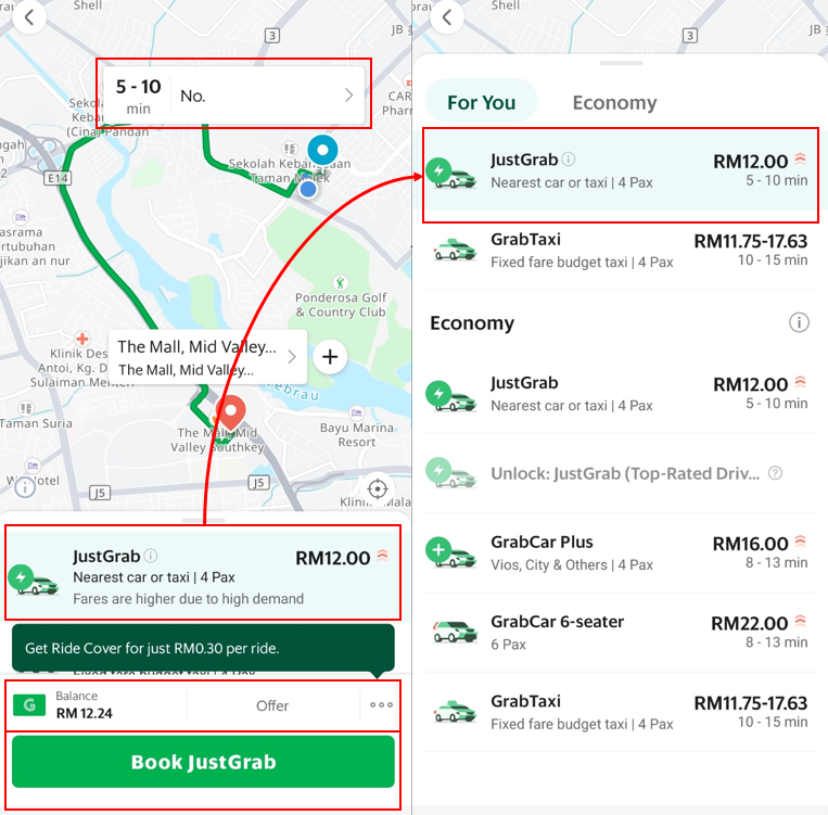 JustGrab : JustGrab은 말레이시아 전역에서 택시와 자동차를 함께 이용할 수 있는 고정 요금 주문형 서비스입니다. 즉, 저스트그랩을 예약한 승객에게는 택시든 승용차든 가장 가까운 차량이 배정됩니다.