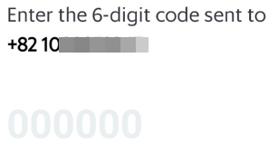 Next 를 누르면 인증 코드가 문자로 옵니다.