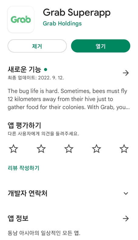 구글 플레이스토어 에서 Grab Superapp 을 설치해주세요.