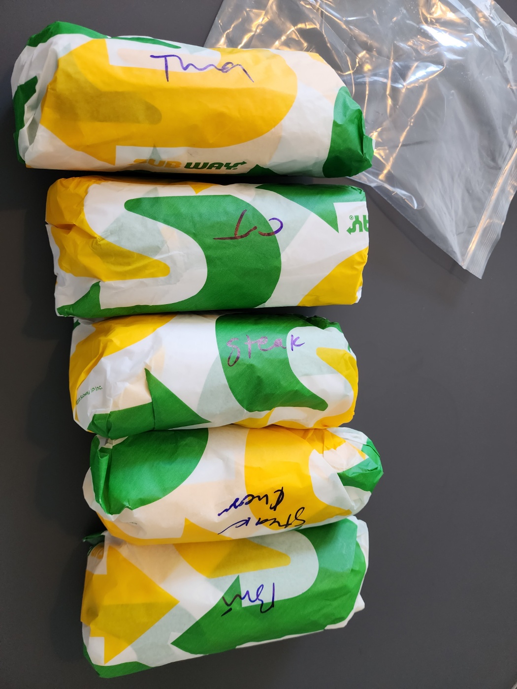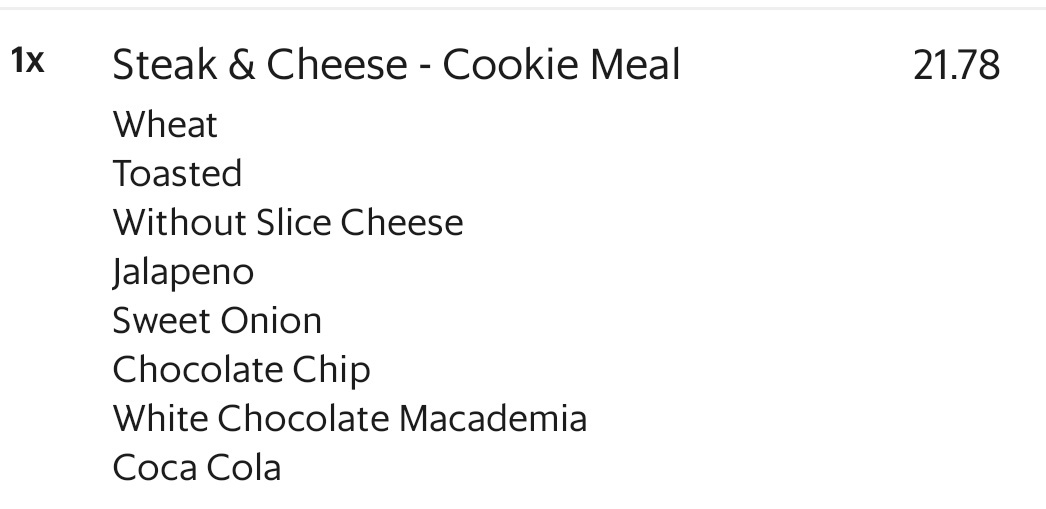 KL 여행 중에 아침으로 Subway를 주문했어요. 작은 샌드위치 4개랑, 큰 샌드위치 1개에 콜라와 쿠키 셋트를 골랐습니다.