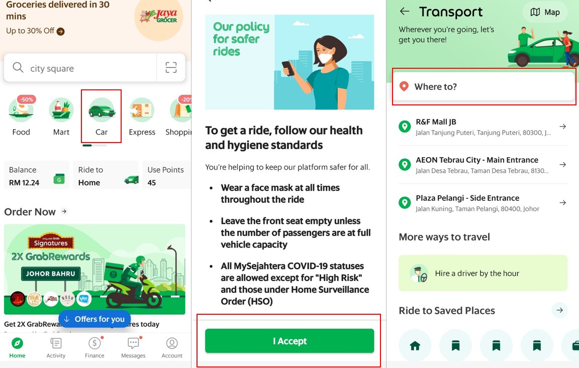 5. Book JustGrab 을 선택하기