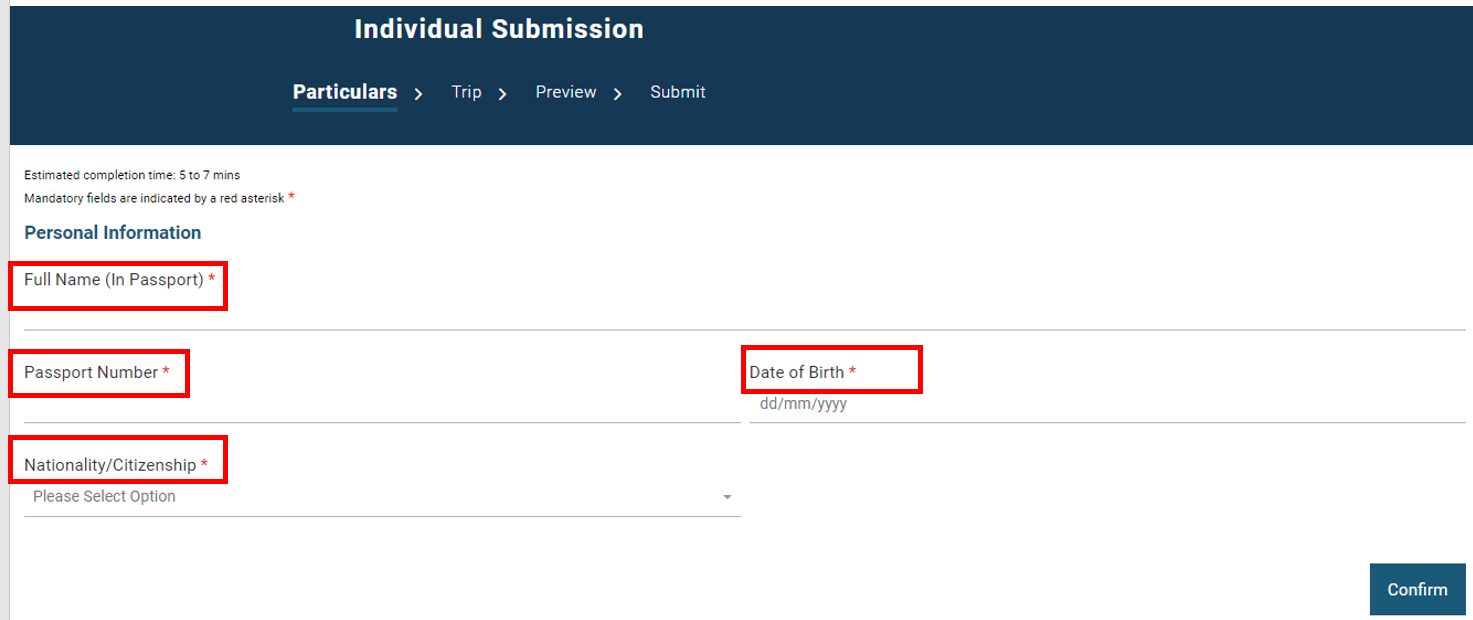 입국 신청서는 싱가포르 입국 3일 전부터 작성이 가능합니다.
