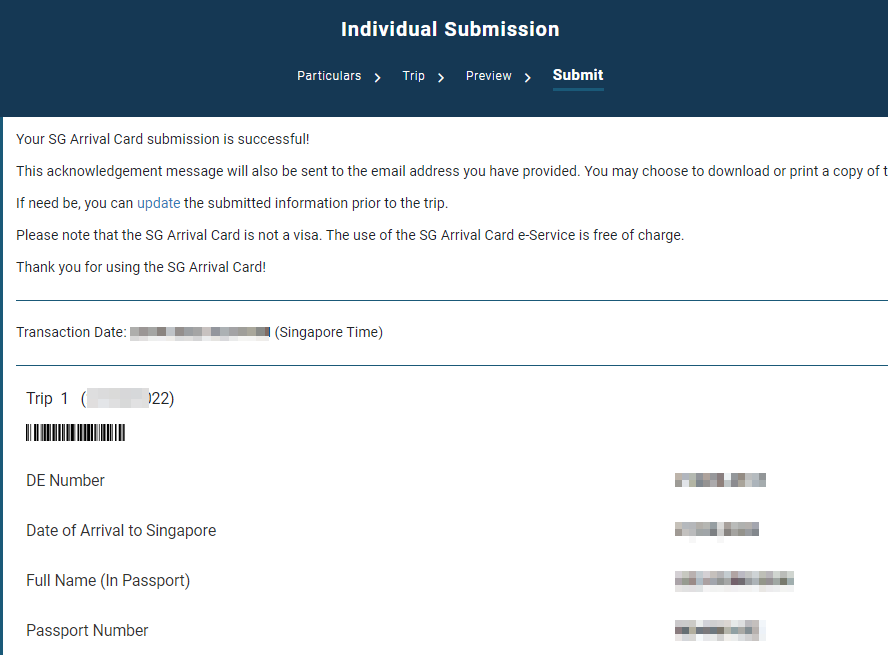* 싱가포르에 입국하게 되면, 다시 자신의 이메일로 입국된 확인 메시지가 도착합니다.