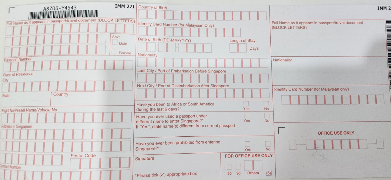 이 입국 신청서는 싱가폴에 입국할 때마다 작성해야 하는 폼으로, 코로나 이전에는 종이로 된 양식에 펜으로 직접 작성하는 형식이었습니다.