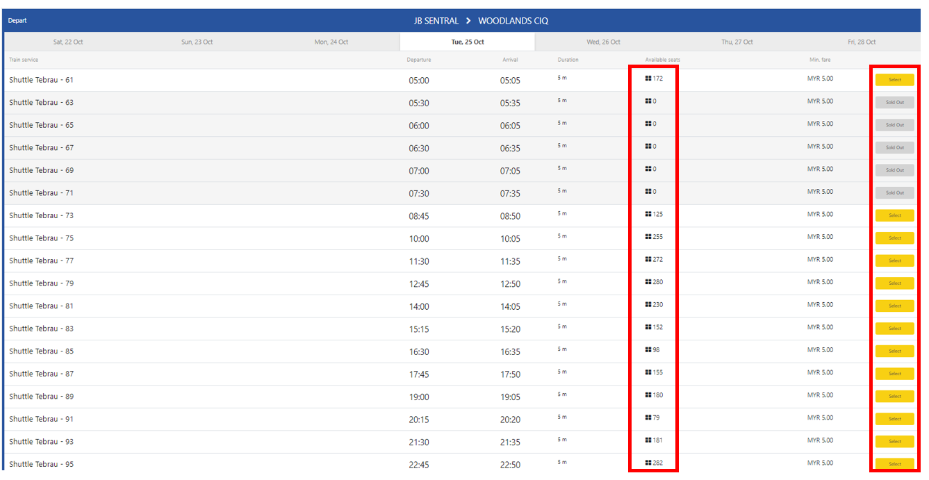Tip : 조호바루로 돌아올 예정이라면 꼭 왕복으로 끊으시길 바랍니다. 왕복가격은 10링깃이지만, 편도로 끊은 후 돌아올때 싱가폴에서 기차표를 끊으면 3배의 가격으로 기차표를 구매해야합니다.