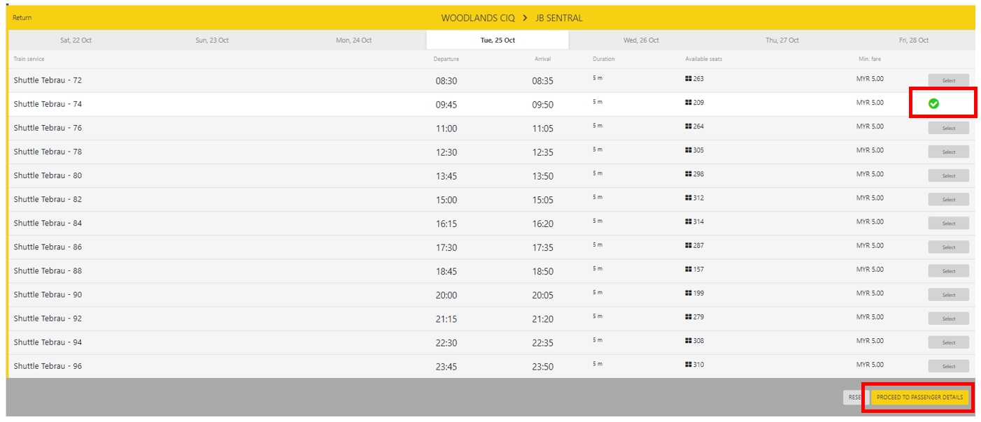 원하는 시간대를 Select 한 뒤 아래 PROCEED TO PASSENGER DETAILS 를 선택합니다.