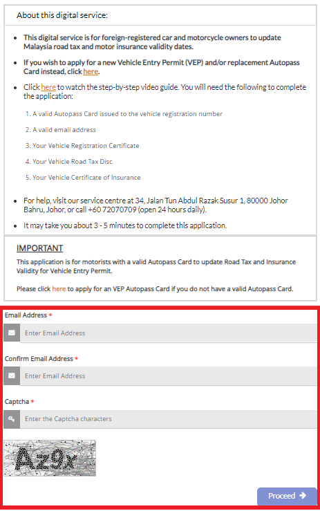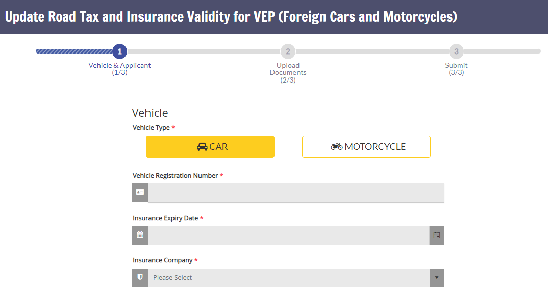 * Update my vehicle's road tax / insurance validity : 내 차량의 도로세/보험 유효기간 업데이트