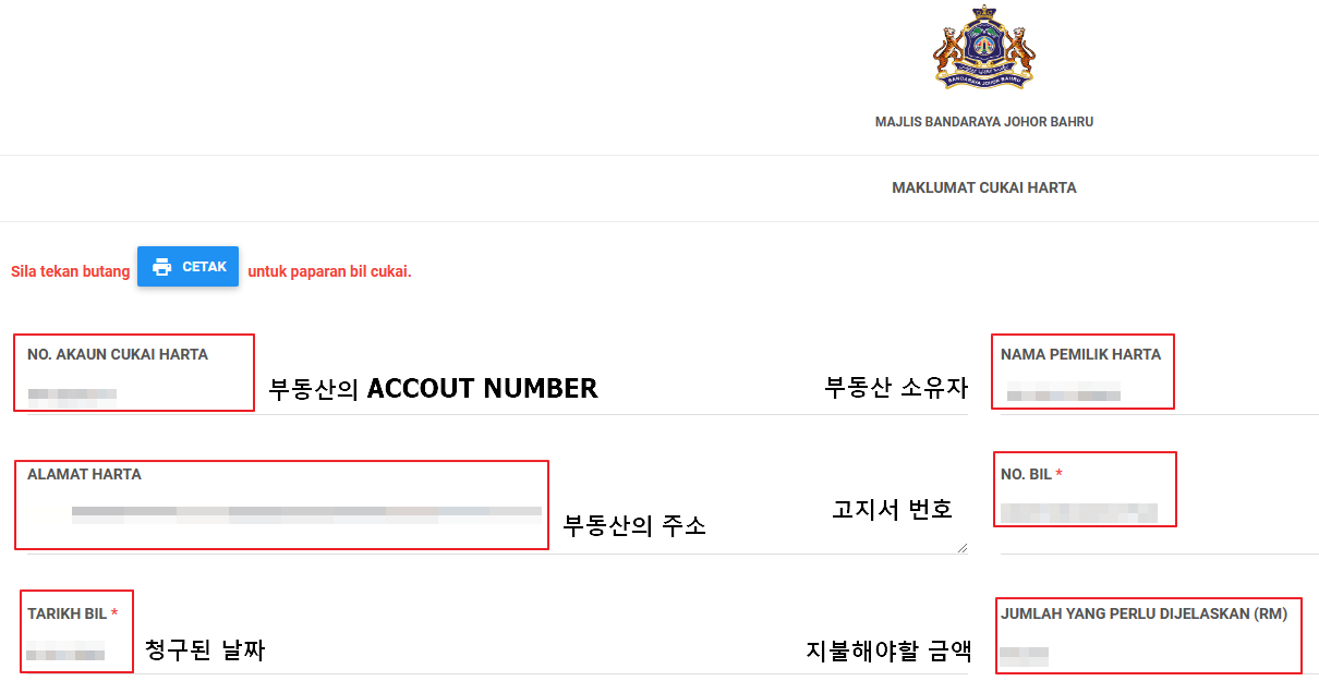 또한 재산세 고지서에 있는 부동산 소유자의 이름이 여전히 이전 소유자인 경우 이 http://johor.ekhidmat.my 링크를 클릭하여 이전을 신청하셔야 합니다.