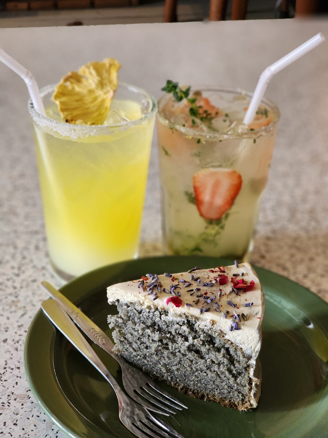 먼저 주문한 케이크와 음료입니다.