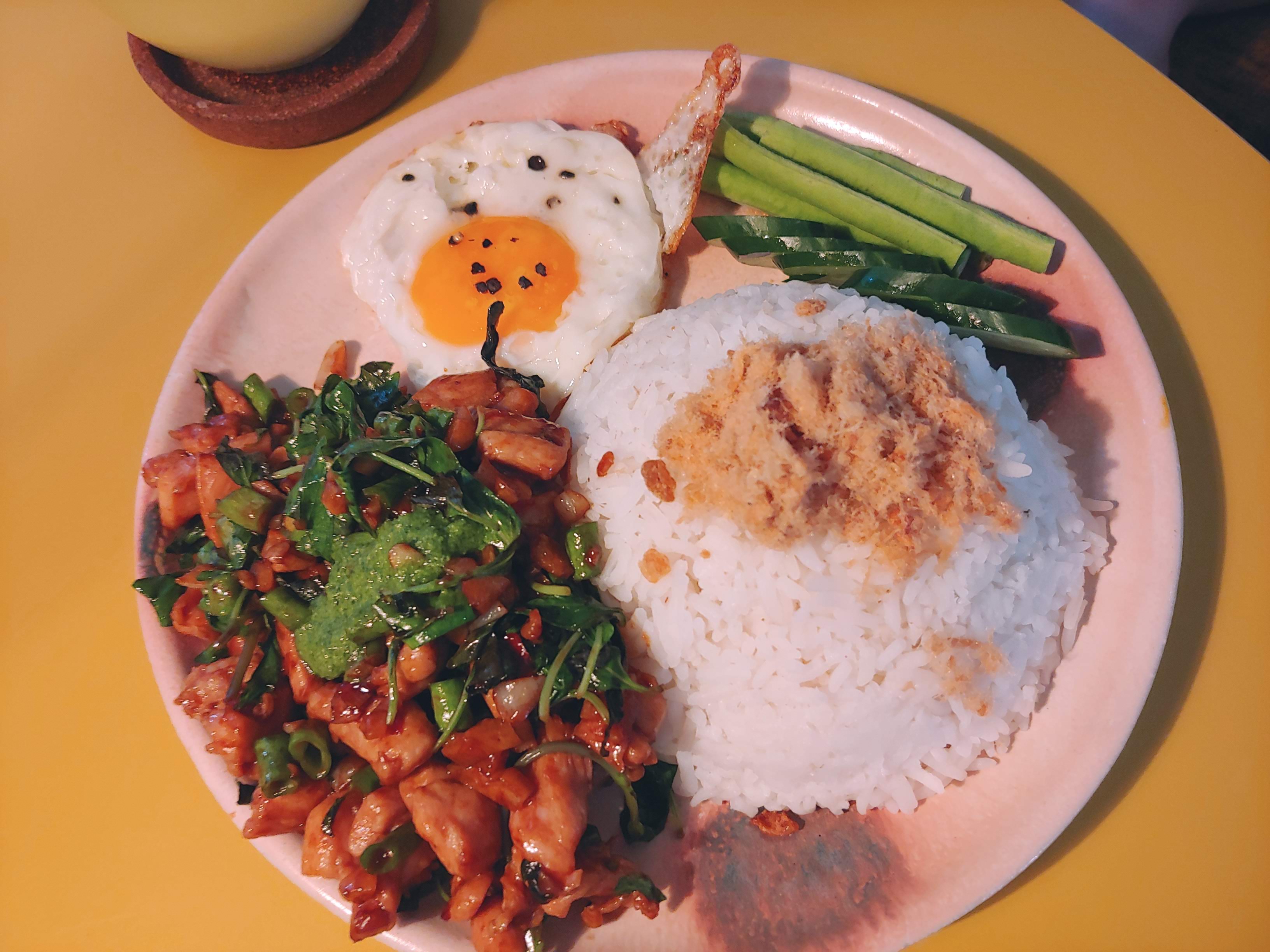 카페에서 기분 좋게 식사한 후에
