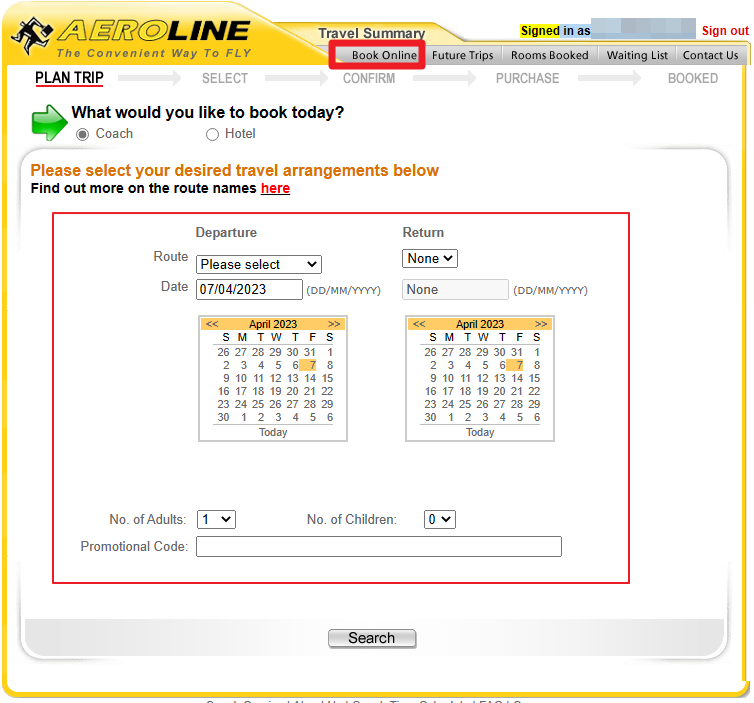 Book Online으로 들어간 뒤 Coach 선택 후 하단의 내용을 정확히 입력해 주세요.
