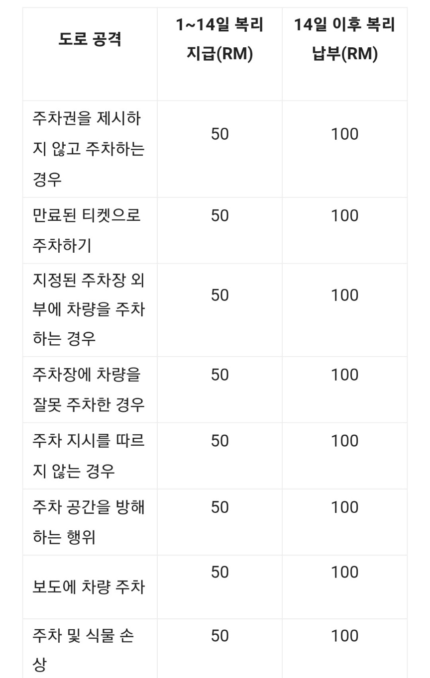 만약 이 주차권을 올려놓지 않으면 불시 검사시에 RM30 벌금용지를 받게됩니다.