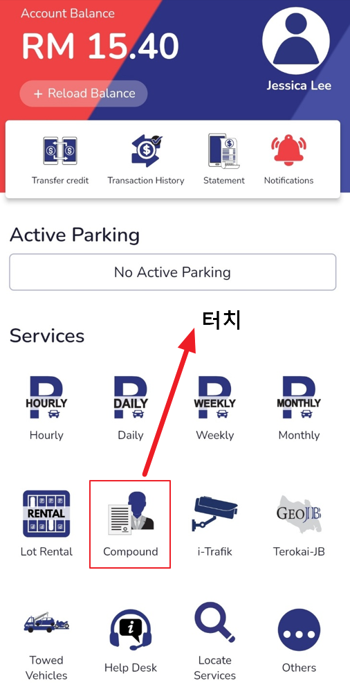 Compound를 터치하면 확인하고 납부할 수 있습니다.