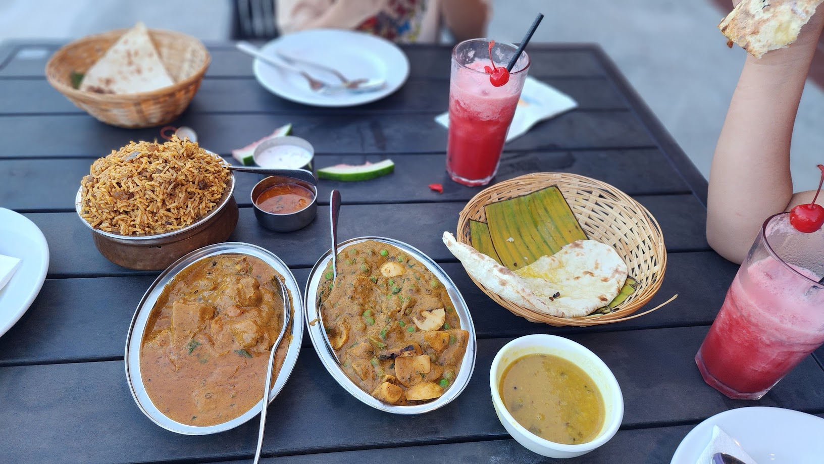 해변가에 몇 개의 식당이 있는데, 저희는 인도 음식점으로 갔어요.